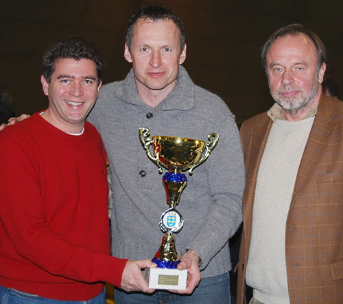Mit dem Mannschaftskapitän der siegreichen Mannschaft, Toni Pfeffer, sowie mit dem Turnierleiter Prof. Ernst Schreiber.