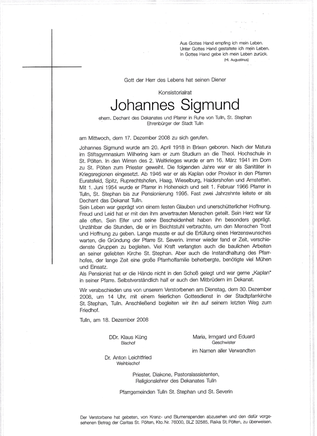 Dechant und Pfarrer a.D. Johannes Sigmund beerdigt