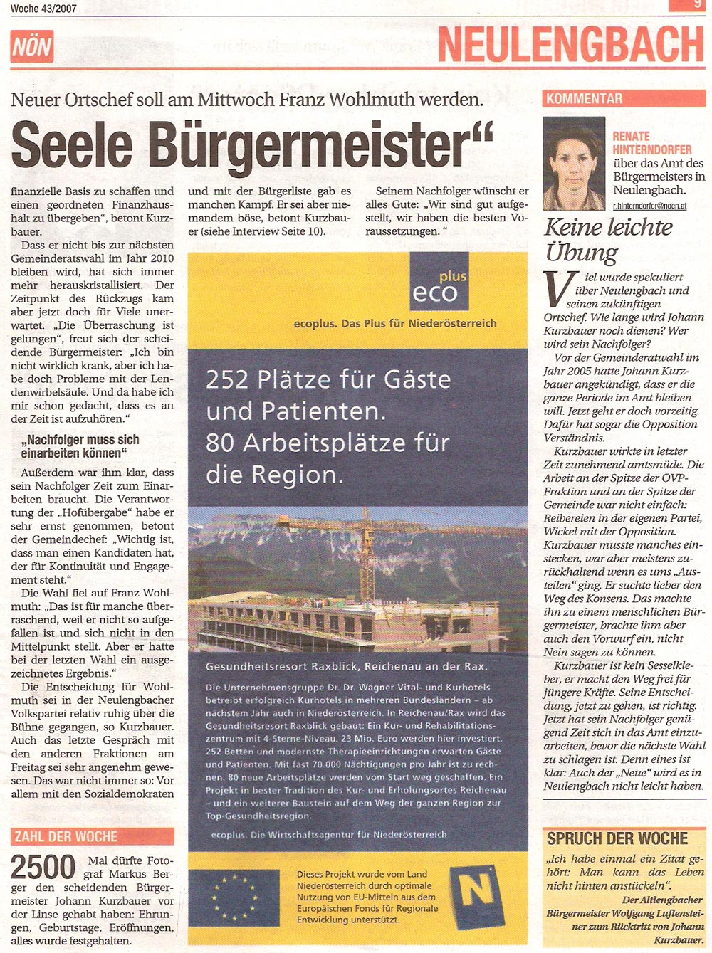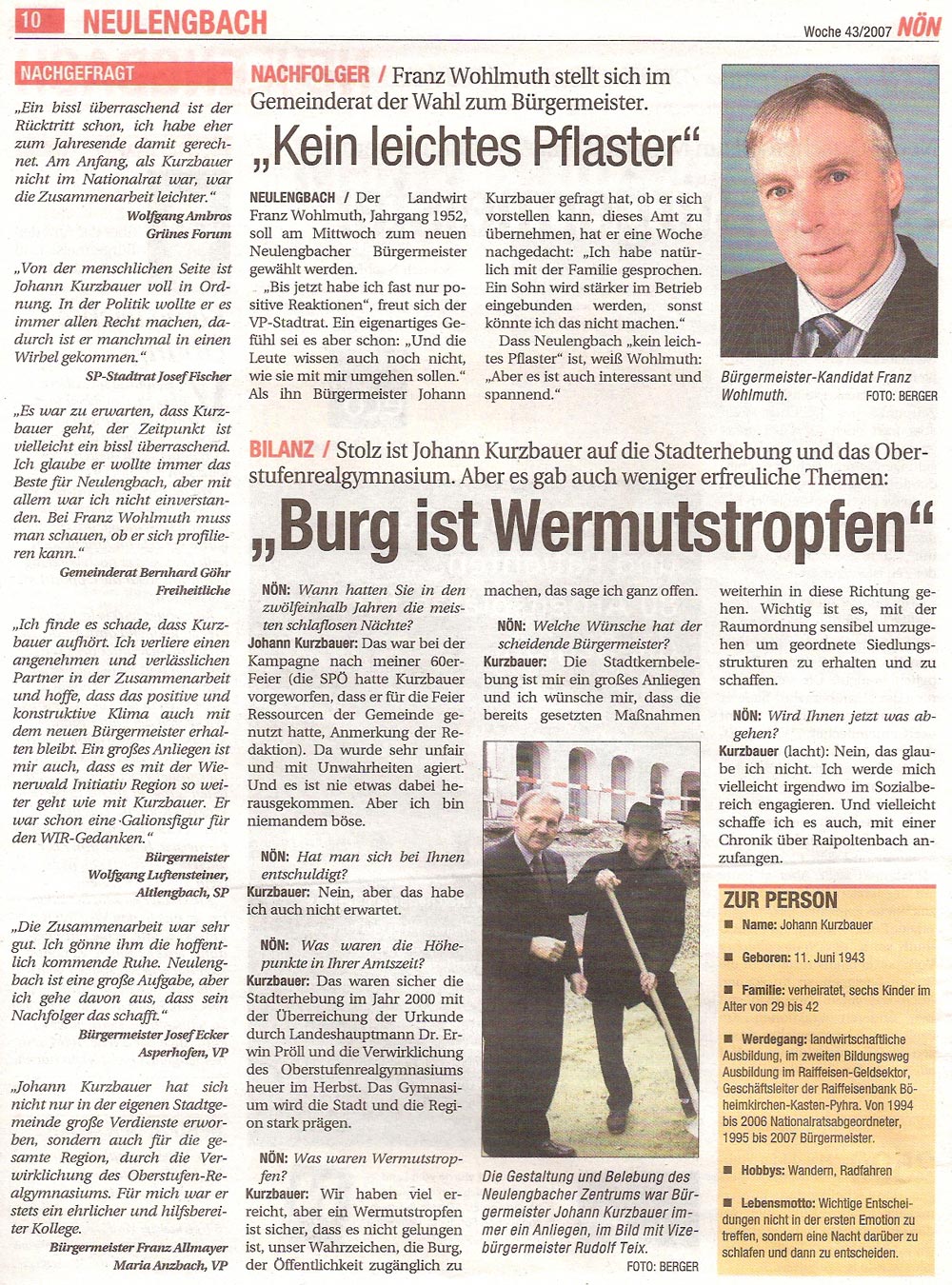 P.S.: Die Bedeutung von Hans Kurzbauer zeigt sich auch an der umfangreichen Medienberichterstattung über seinen Rücktritt. Zum Beispiel berichtet die NÖN auf drei Seiten: Klicken Sie für Seite 1 - Seite 2 - Seite 3