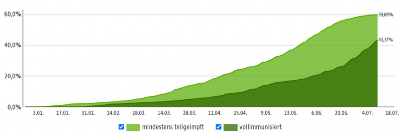 Am vergangenen Freitag (10.7.2021) lag die Impfquote in Niederösterreich bei 59,69 %, wobei sich der Anstieg der Impfquote seit Anfang Juli deutlich verflacht hat (Quelle: ORF):