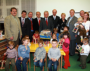 Die Stimmung war nicht nur bei den Kindern bestens: „Tulln ist eine boomende Stadt und wir wollen zeitgerecht für eine entsprechende Infrastruktur vorsorgen - auch für die vielen hier ansässigen Jungfamilien. Das dichte Betreuungsangebot für Tullns jüngste Bürger sehen wir als eine wirksame Maßnahme zur Familienförderung – und zugleich ein Stück Lebensqualität für deren Eltern“, betonte Bürgermeister Willi Stift bei der offiziellen Eröffnung des neuen dreigruppigen Kindergartens in der Tullner Hafenstraße. In einer Rekordzeit von weniger als sechs Monaten wurde dieser im Langenlebarner-Viertel erbaut. Es war eine große Herausforderung. Alle haben sich ins Zeug gelegt: der Architekt, die Baufirma, die Projektverantwortlichen der Stadtgemeinde, das Kindergartenpersonal und nicht zuletzt die zuständigen Stadt-Politiker, die alles daran gesetzt haben, um die erforderlichen Genehmigungen und Grundtransaktionen in Rekordzeit abzuwickeln. Wir haben es geschafft: Da, wo im Frühjahr noch eine Baugrube war, können heute ca. 40 Tullner Kinder ab 2,5 Jahren spielen, basteln und turnen.