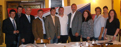 Gruppenfoto des neuen Vorstandes mit Ehrengästen: Bernhard Schilcher, Christian Friedrich (Obmann), Roman Markhart, Claudia Kremser, Gerald Pribil, Barbara Becker, Sabine Bauer-Kaiser.