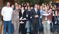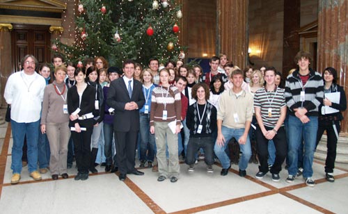 Schüler der 8. Klassen des Gymnasiums vorm Christbaum im Parlament