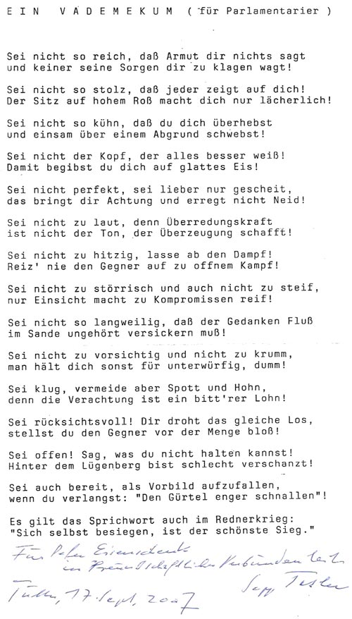 Vademekum für Politiker von Prof. Josef Tasler